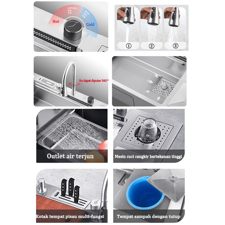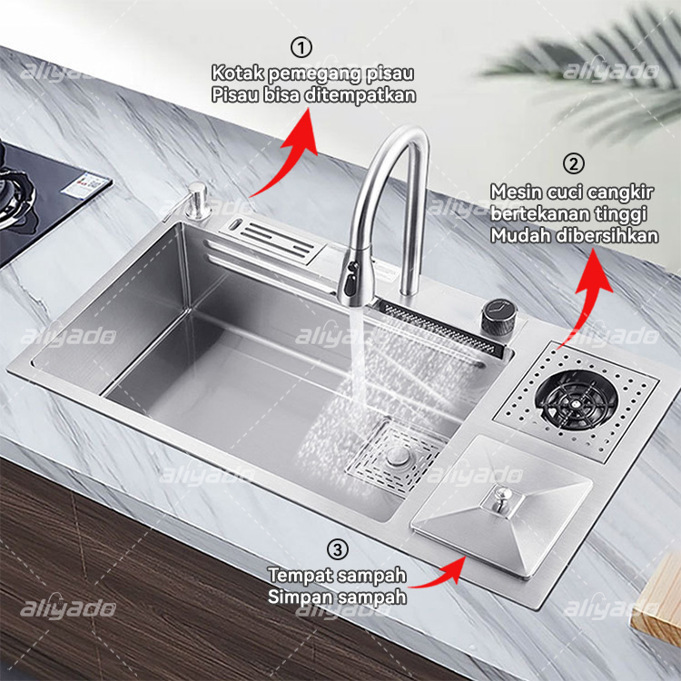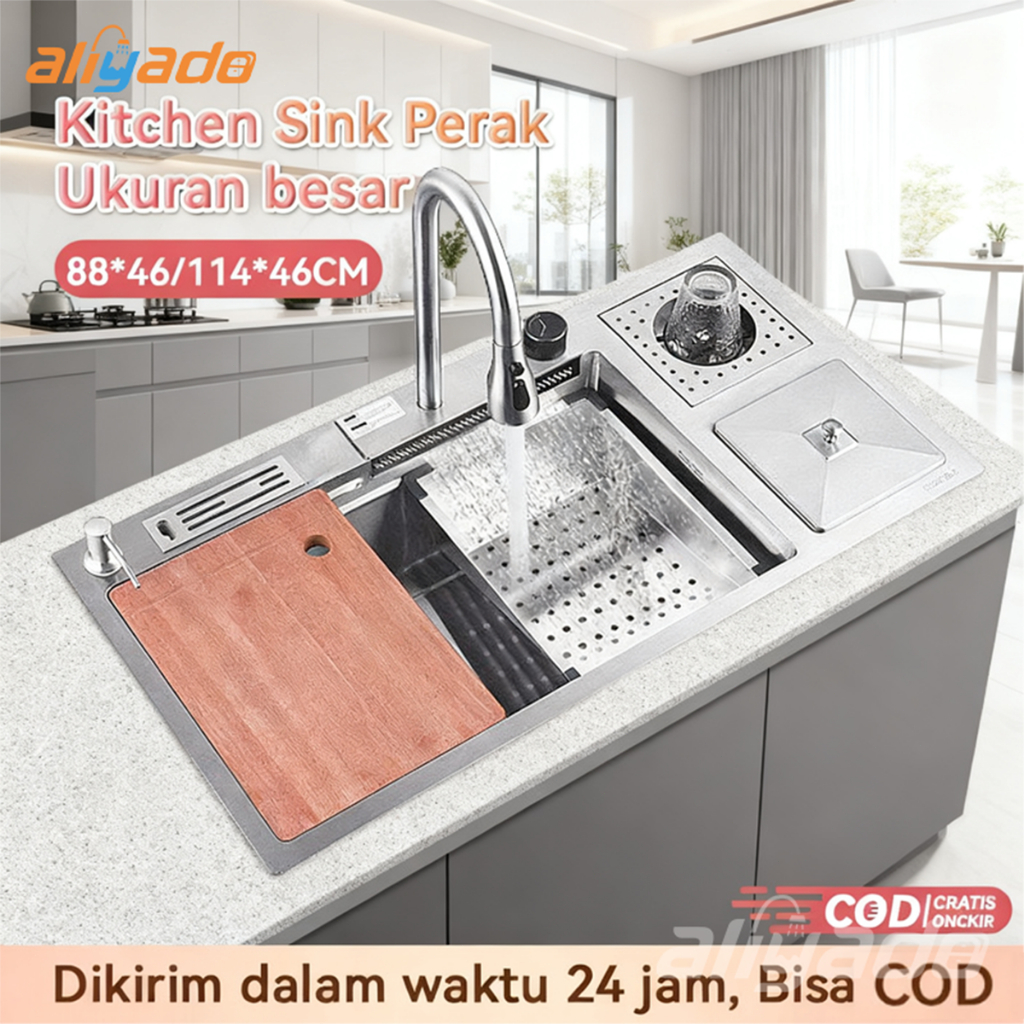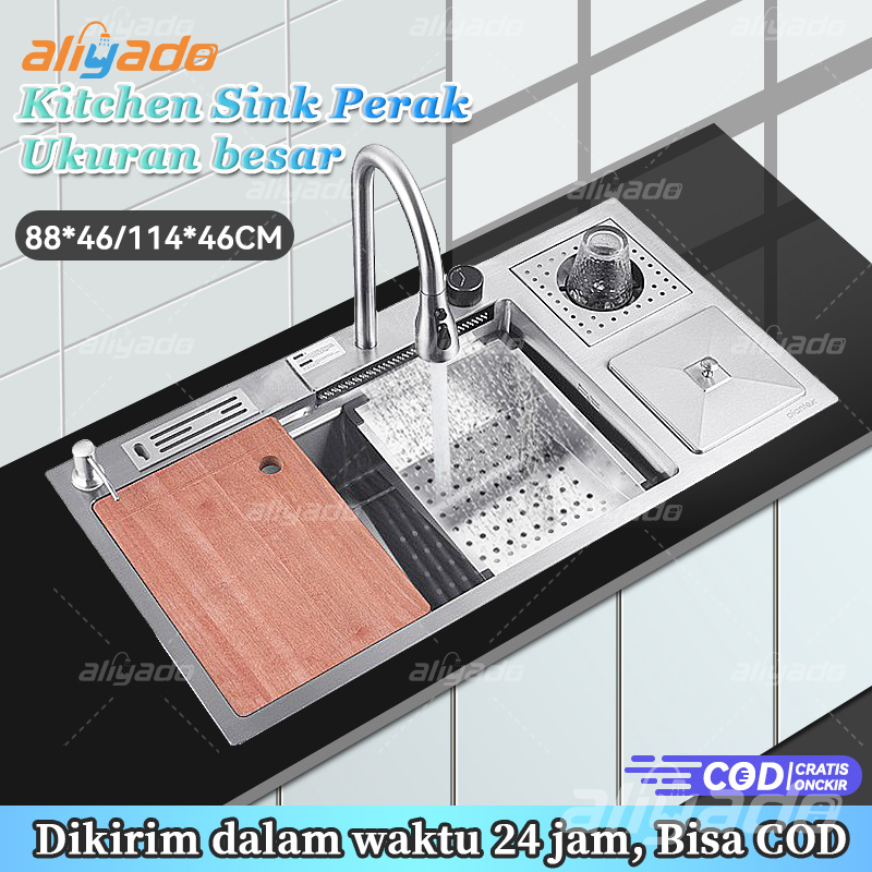 ⭐Berkualitas & Bergaransi⭐ Sink Dapur Perak Mewah Stainless Steel 304, (114x46 / 94x46 / 88x46 cm)ilengk Keran Tarik