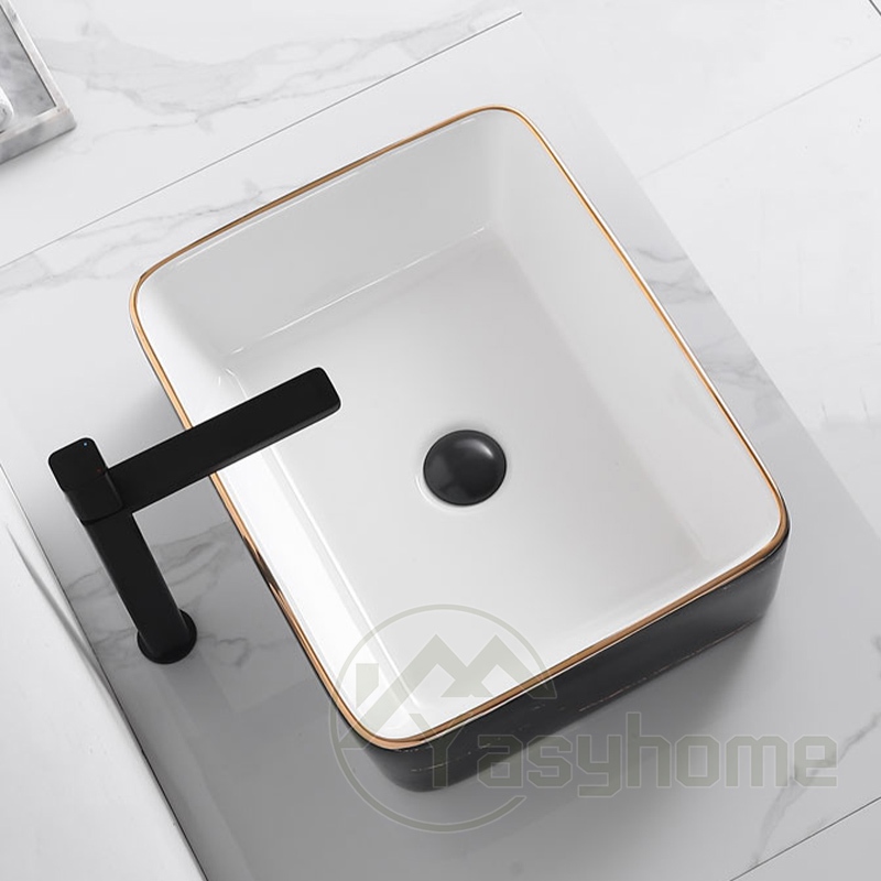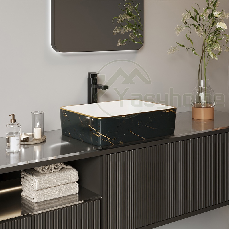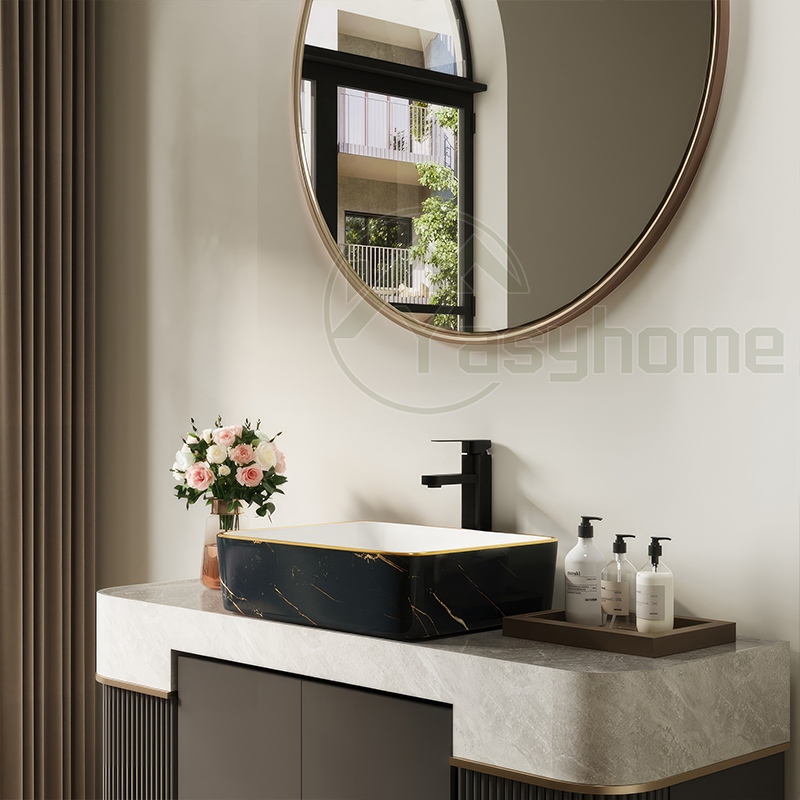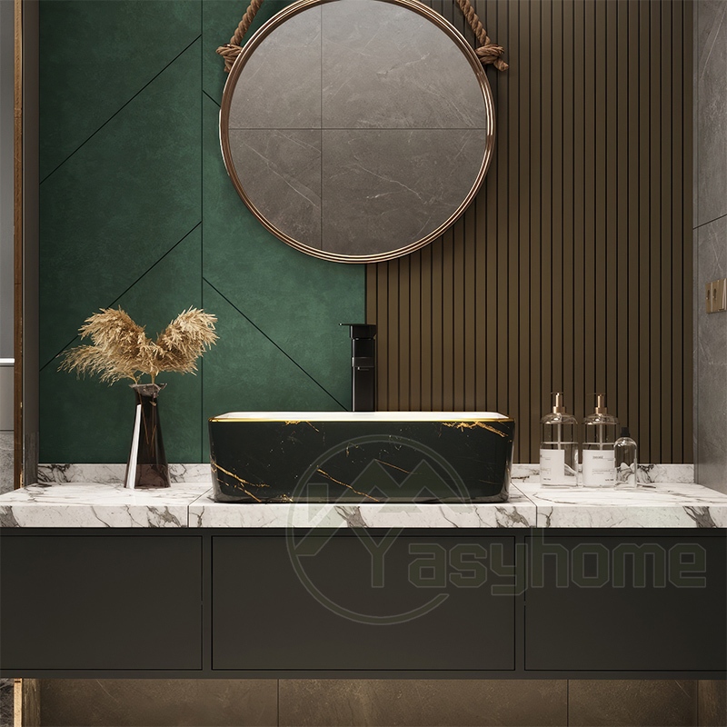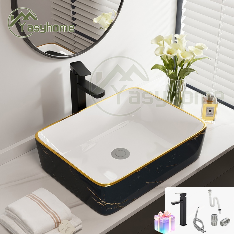 ❤️kan kayu&hadiah❤️Washtafel marmer Marble keramik hitam Washtafel modern Kamar Mandi Dasar Putih Corak Lis Gantung