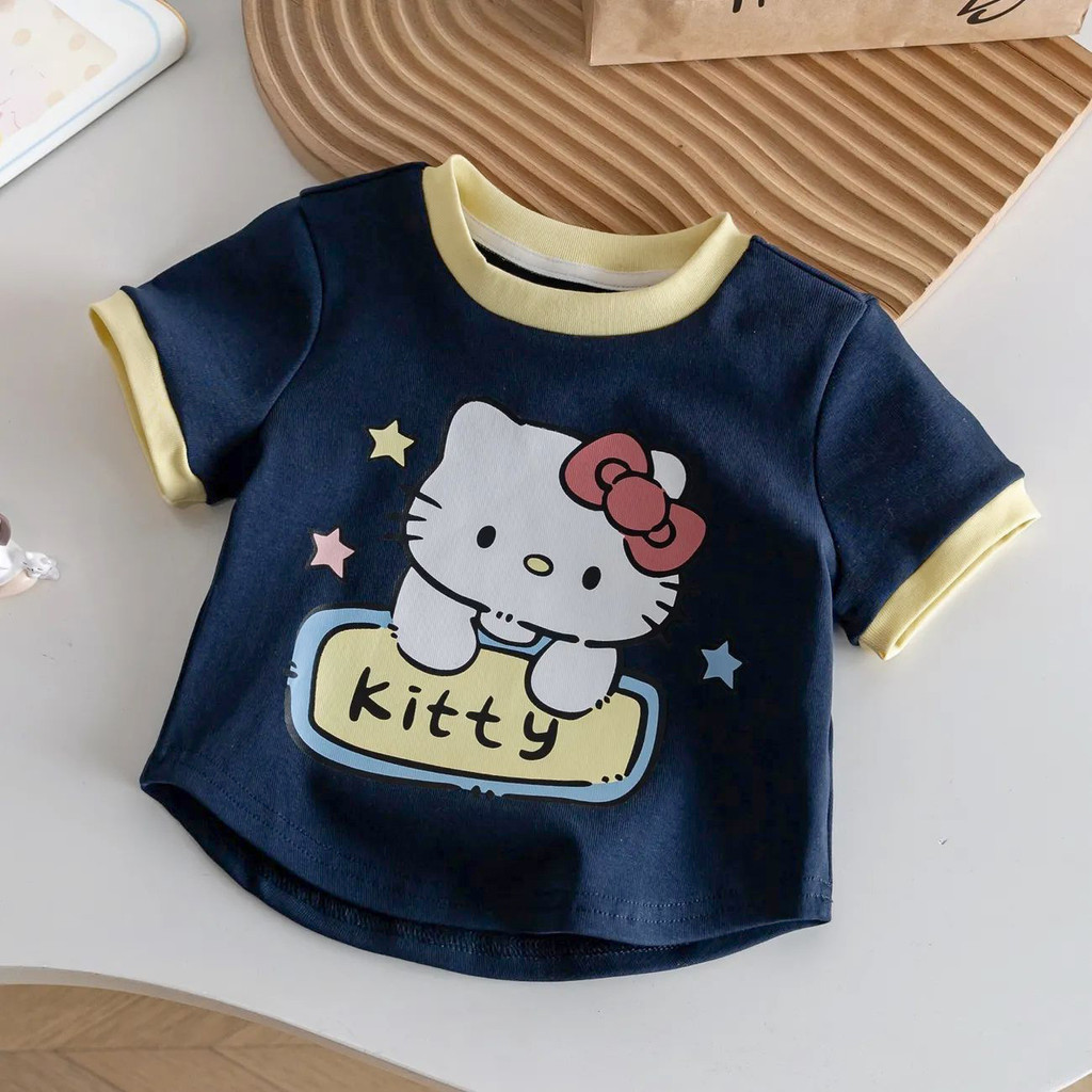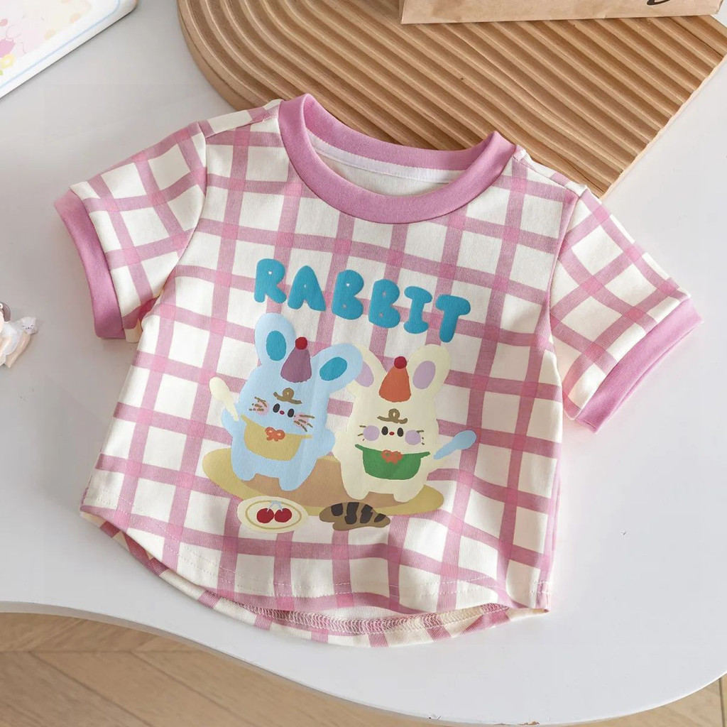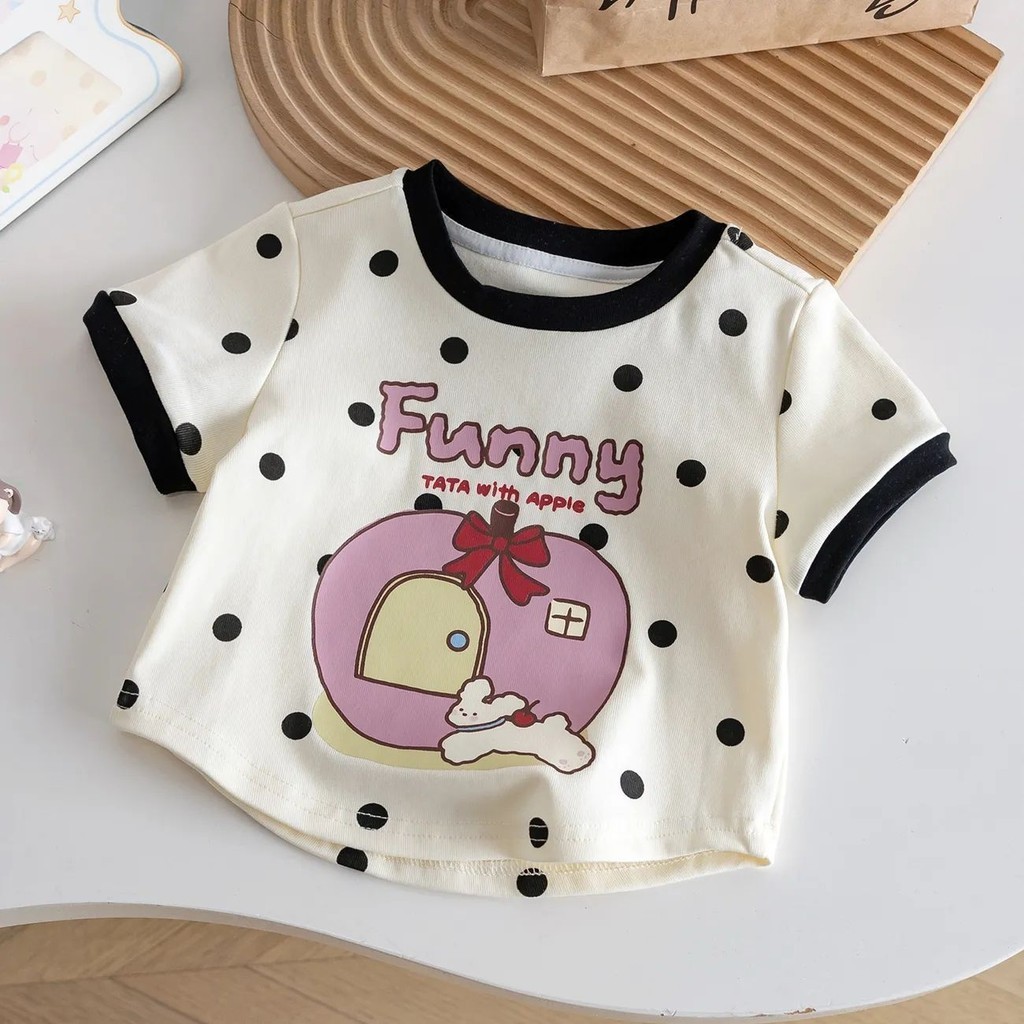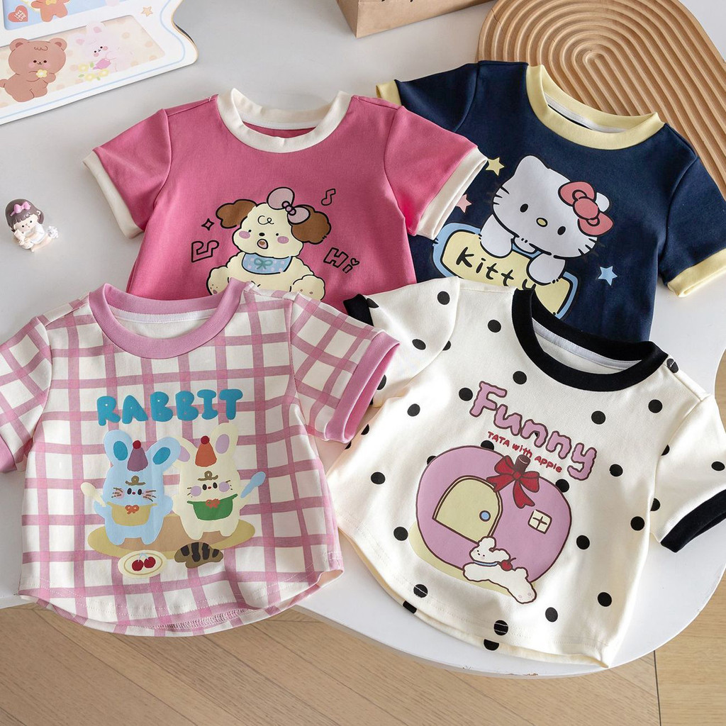 Atasan Kaos Anak Perempuan T-Shirt Oliv Lengan Pendek Karakter Cute
