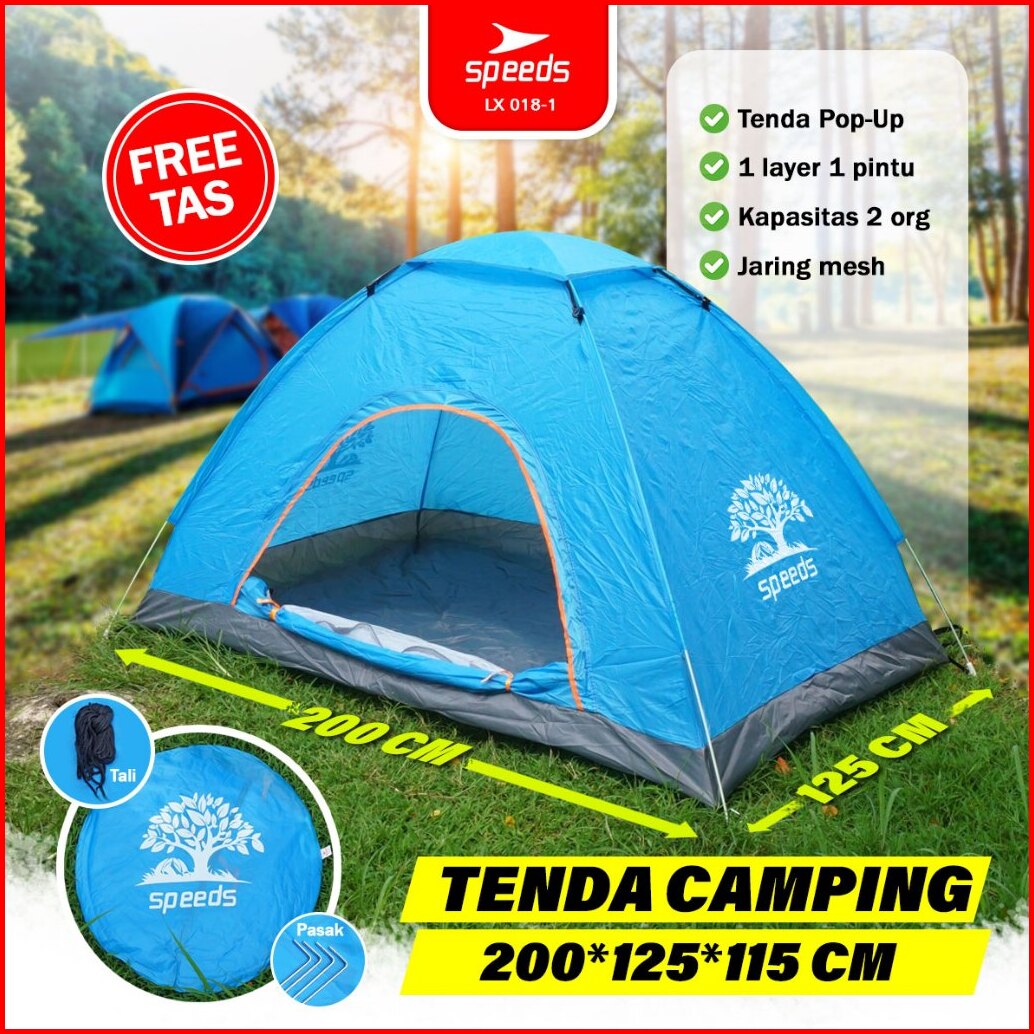 Speeds Tenda Camping Biru Kapasitas 1-3 Orang Tenda Otomatis Outdoor Indoor Tenda Gunung 018-1