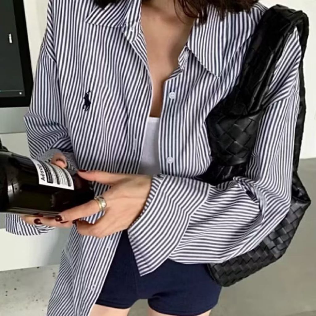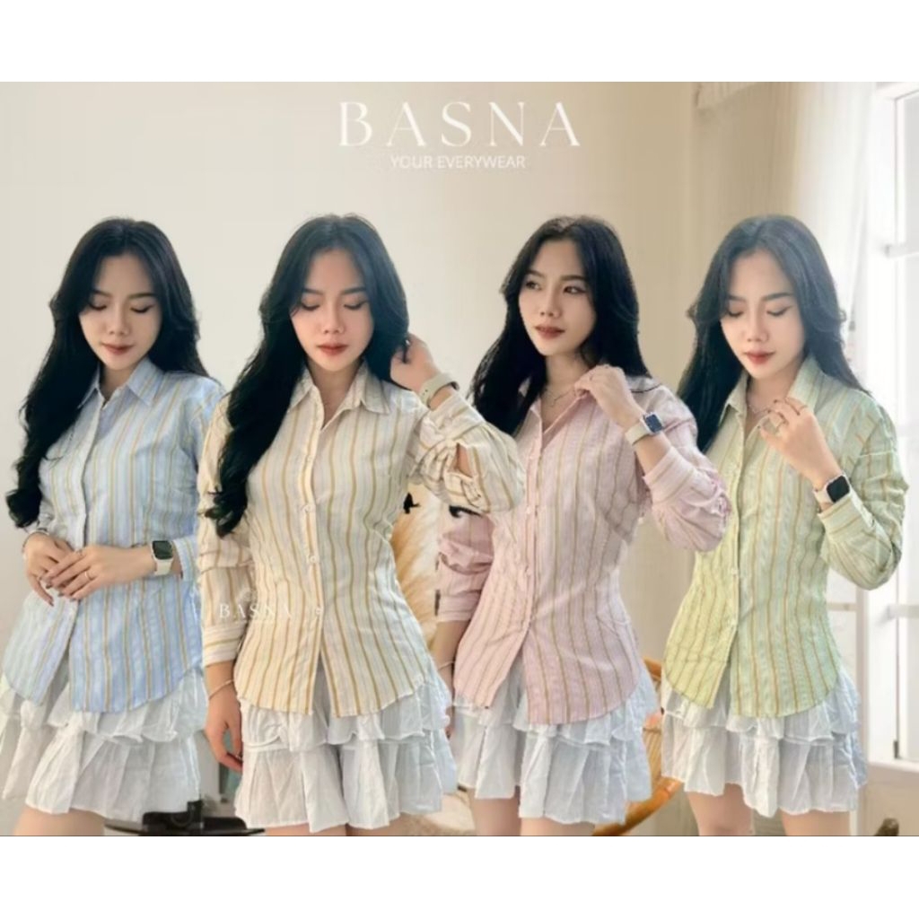 Atasan Kemeja Wanita Strip Elengan Panjang Kemeja Kerja Wanita Shirt Long Sleev