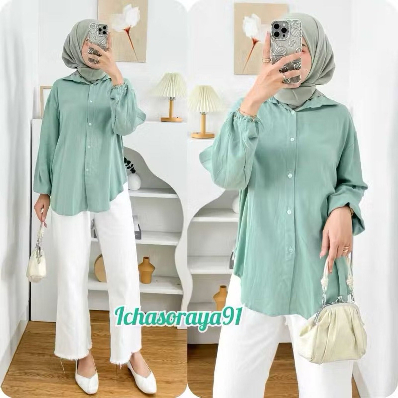 Kemeja Wanita Terbaru Dan Kekinian Rayon Oversize Polos Bahan Rayon Ld 120 Cm Pergelangan Karet