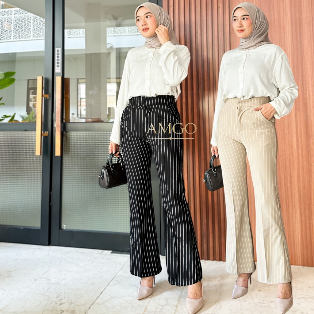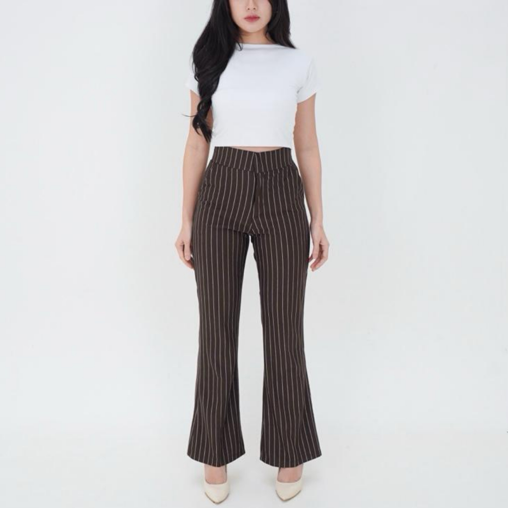 Flare Pants Stripe Bangkok - Celana Cutbray Wanita Highwaist Pants Import Premium