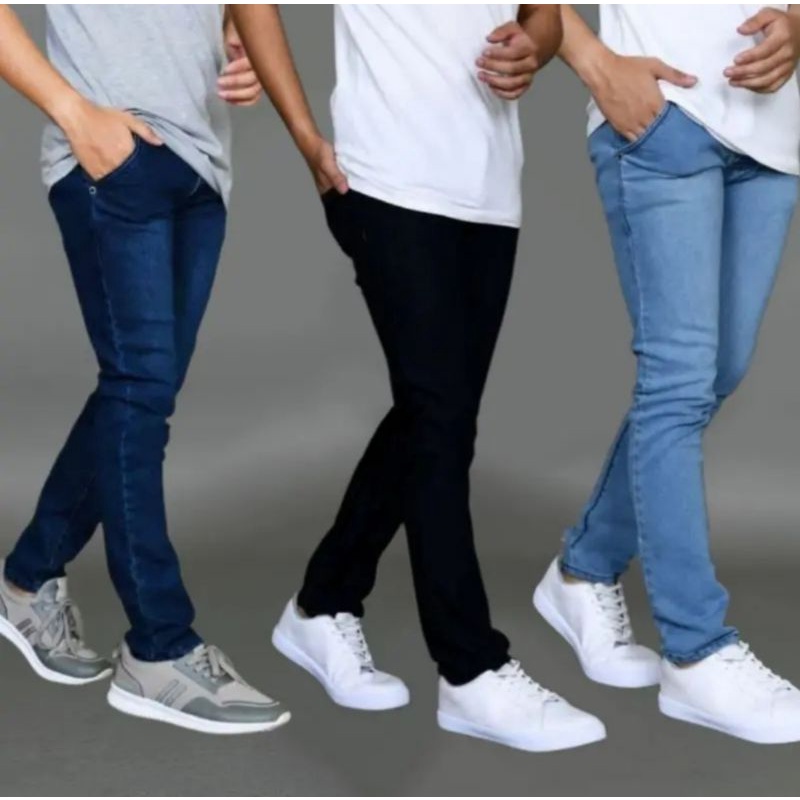 Celana Jeans Pensil Skinny Cowok Slimfit Premium Hitam Size 27/38