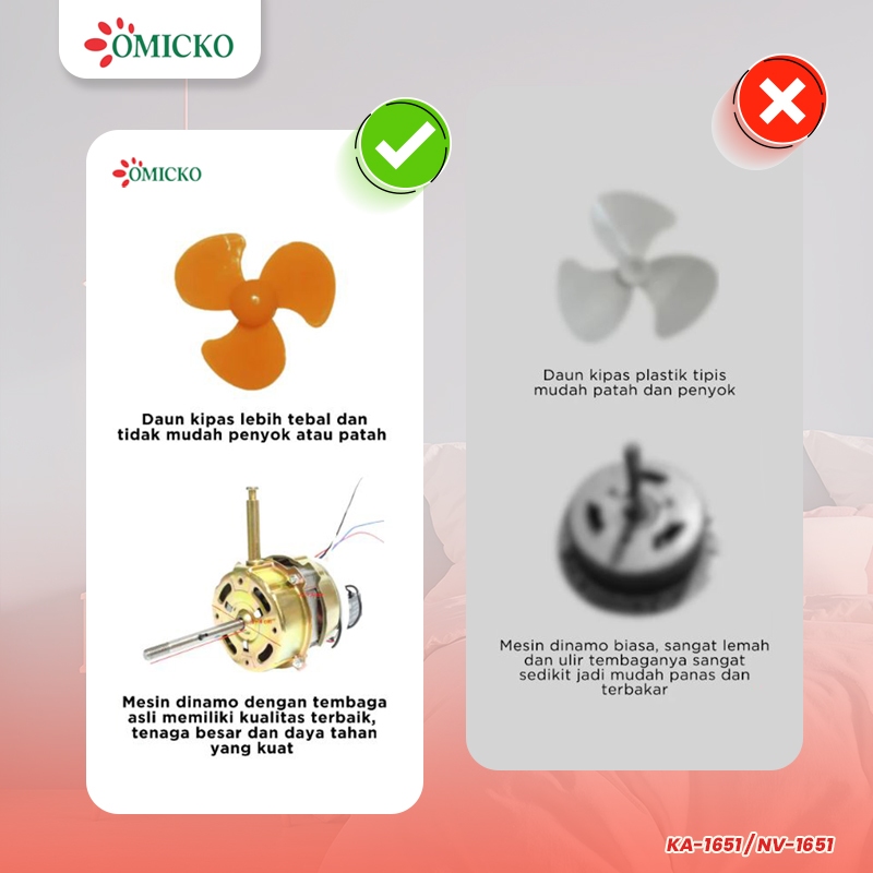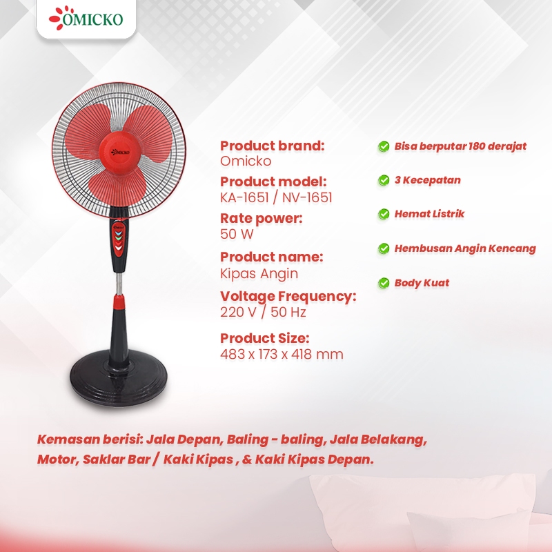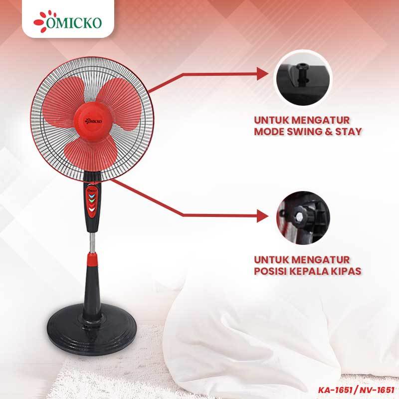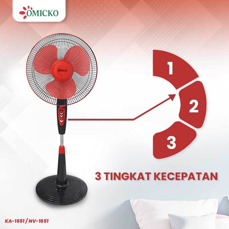 Omicko Kipas Angin Berdiri 16 Inch KA-1651 – Stand Fan 3 Mode Kecepatan Garansi Resmi