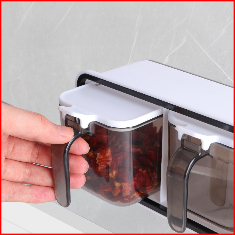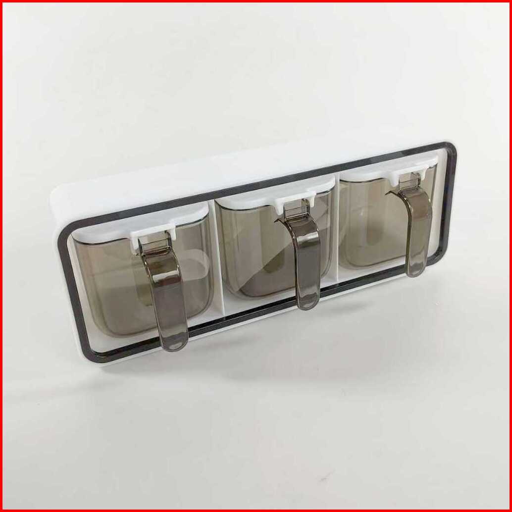 Rak Gantung Tempel Dinding Botol Wadah Tempat Bumbu Dapur Set 3pcs Sendok