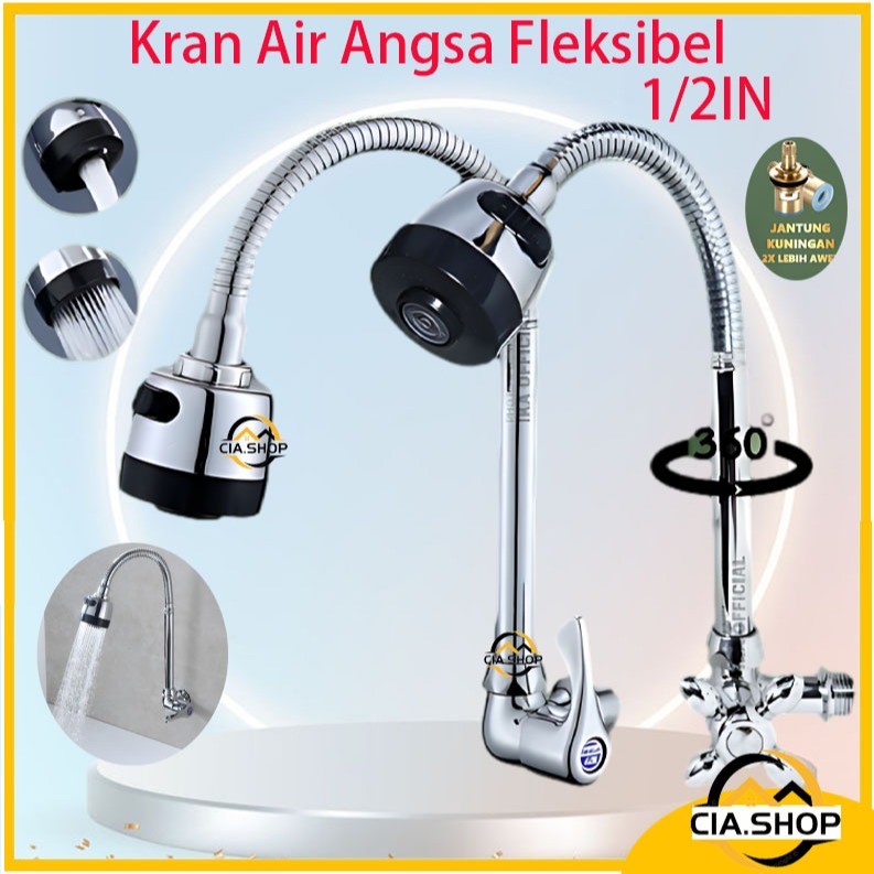 Kran Air Angsa Fleksibel Wastafel Tembok Sink Stainless Kuningan Cuci Piring Minimalis Premium Keran