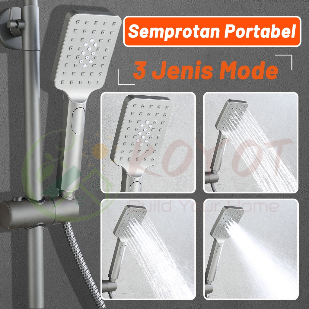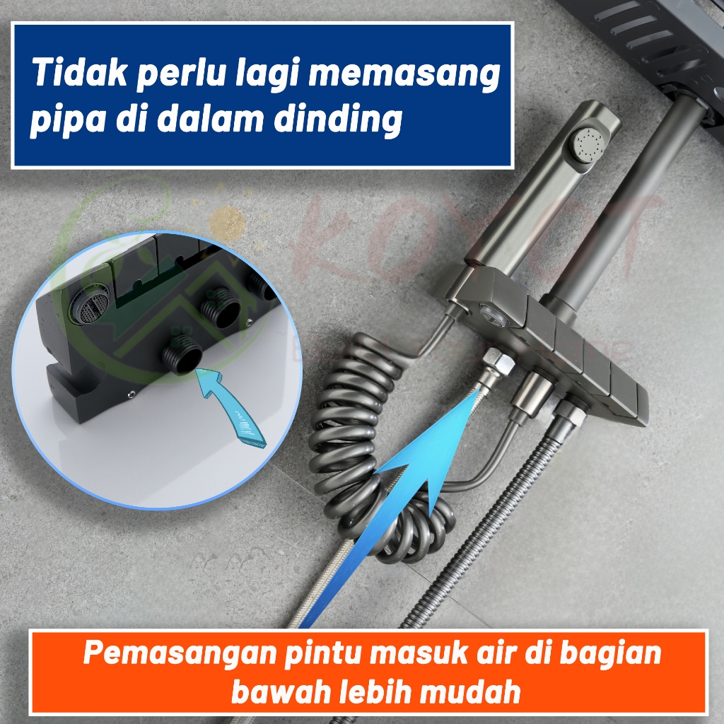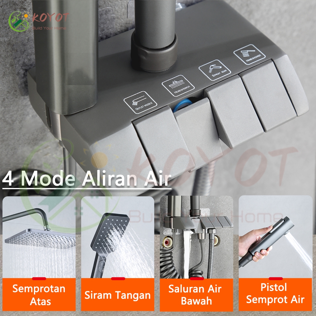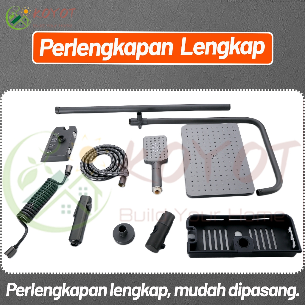 KOYOT Desain Tuts Piano Shower Kamar Mandi Full Set Sumber Tunggal Persegi Abu-abu 4 Ways / Jet Shower / Hand Shower Ma
