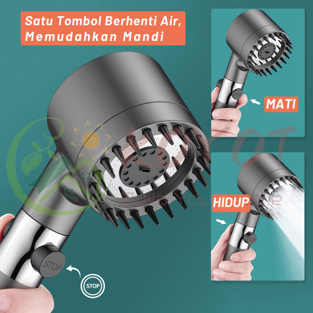 KOYOT Abu-abu Hand Shower Mandi Multifungsi 3 Mode Adjustable Jet Shower Kamar Mandi Full Set 1/2 Inch dengan Inti Filte