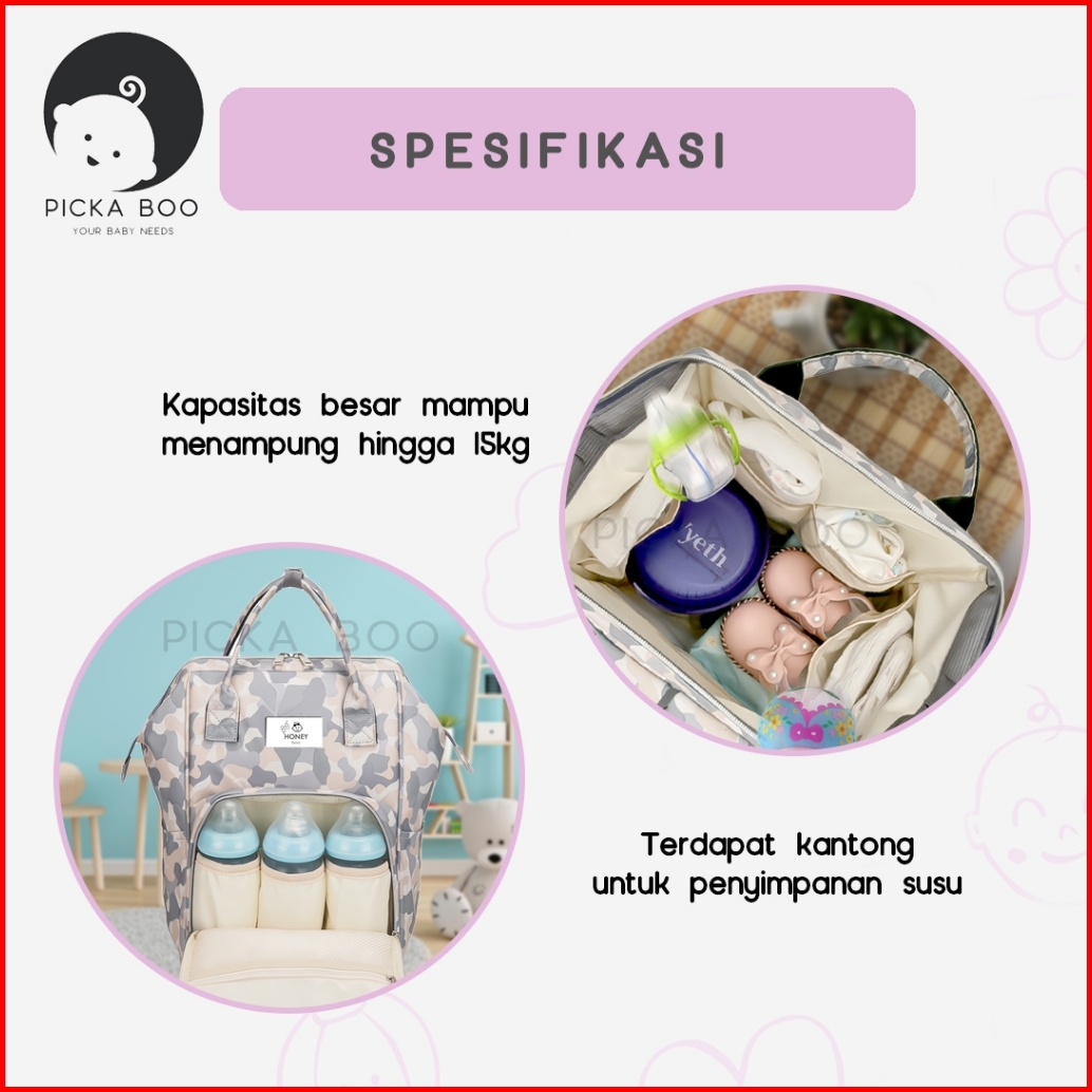 Picka Boo Tas Perlengkapan Bayi Tas Ransel Bayi Multifungsi Diaper Bag Baby Ada Lapisan Thermal