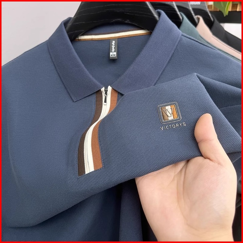 Tamp-x Polo Shirt Pria Distro Bordir Kerah Casual Lengan Pendek Premium Half Zip Korean Style Slim Fit