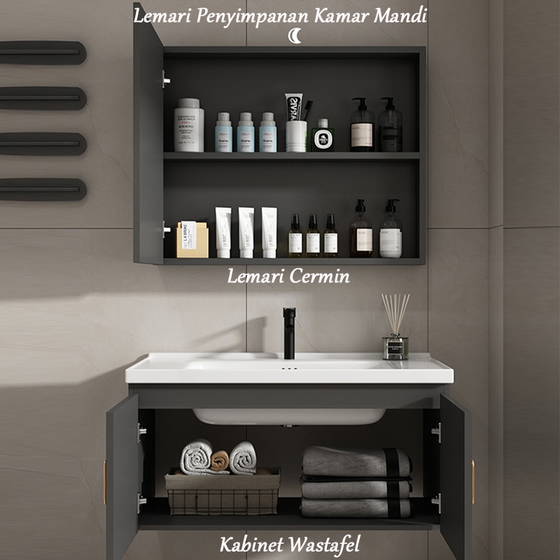 wastafel gantung set 60/80cm-kabinet wastafel aluminium-wastafel keramik-wastafel dinding-wastafel cuci tangan estetik-w