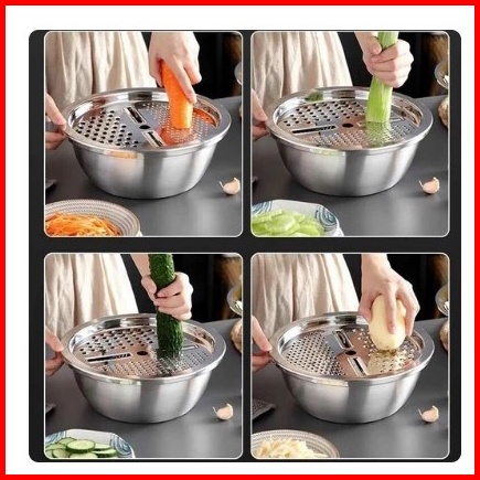 Baskom Parut Stainless 26cm 1 Set 3 Pcs Parutan Serbaguna - Silver