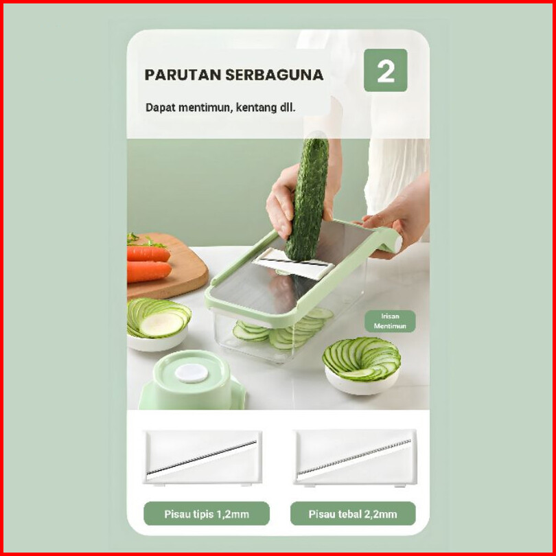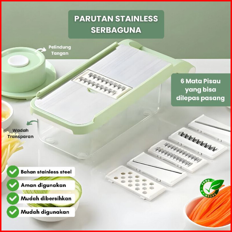 Banten Ready Stock Parutan Stainless Potong Iris Sayur Buah Serbaguna Premium Vegetable Cutter 6 Pisau Wadah Transparan
