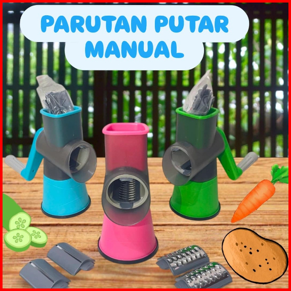 Parutan Manual Putar Multifungsi 3 In 1 Mata Pisau Stainless Pemotong Sayuran Buah Serbaguna