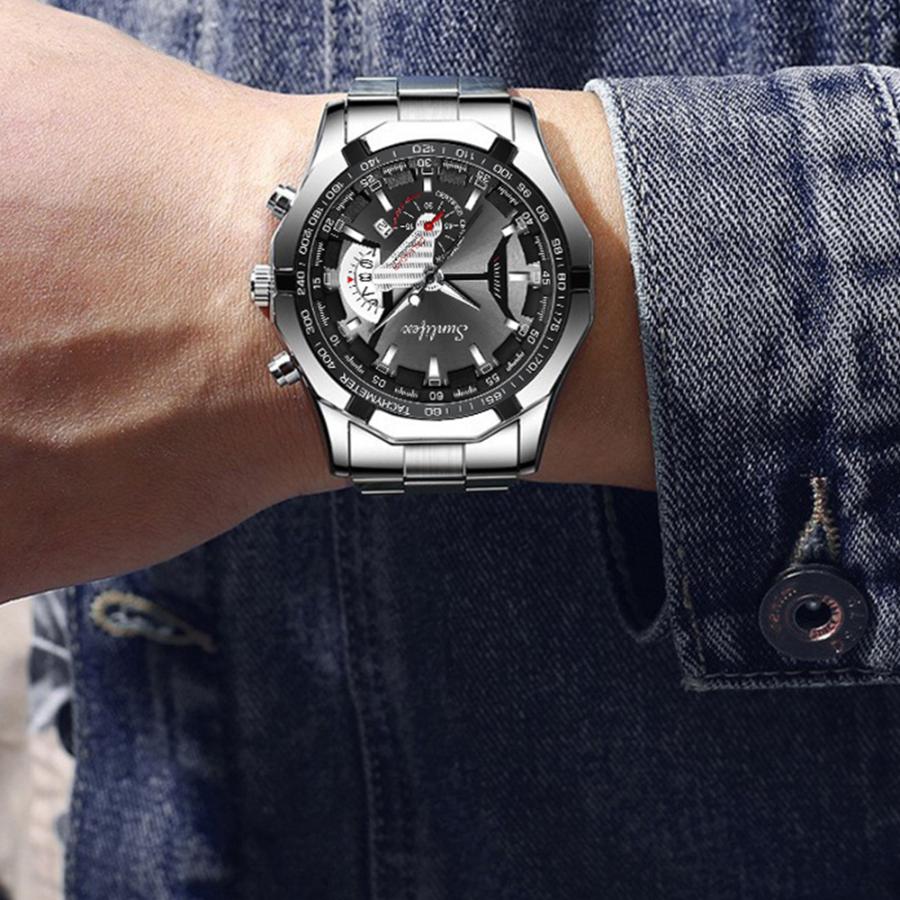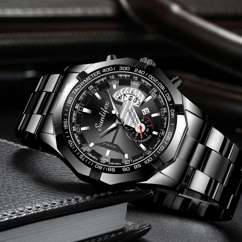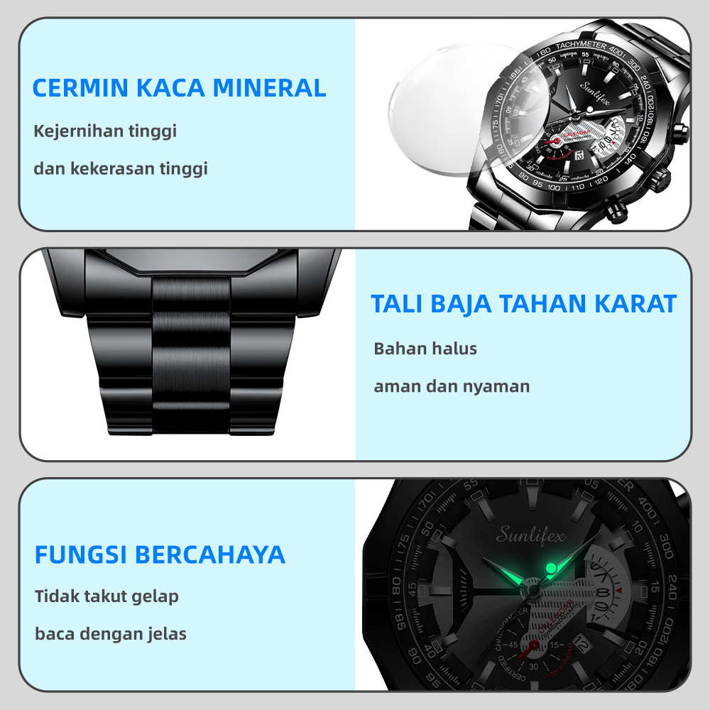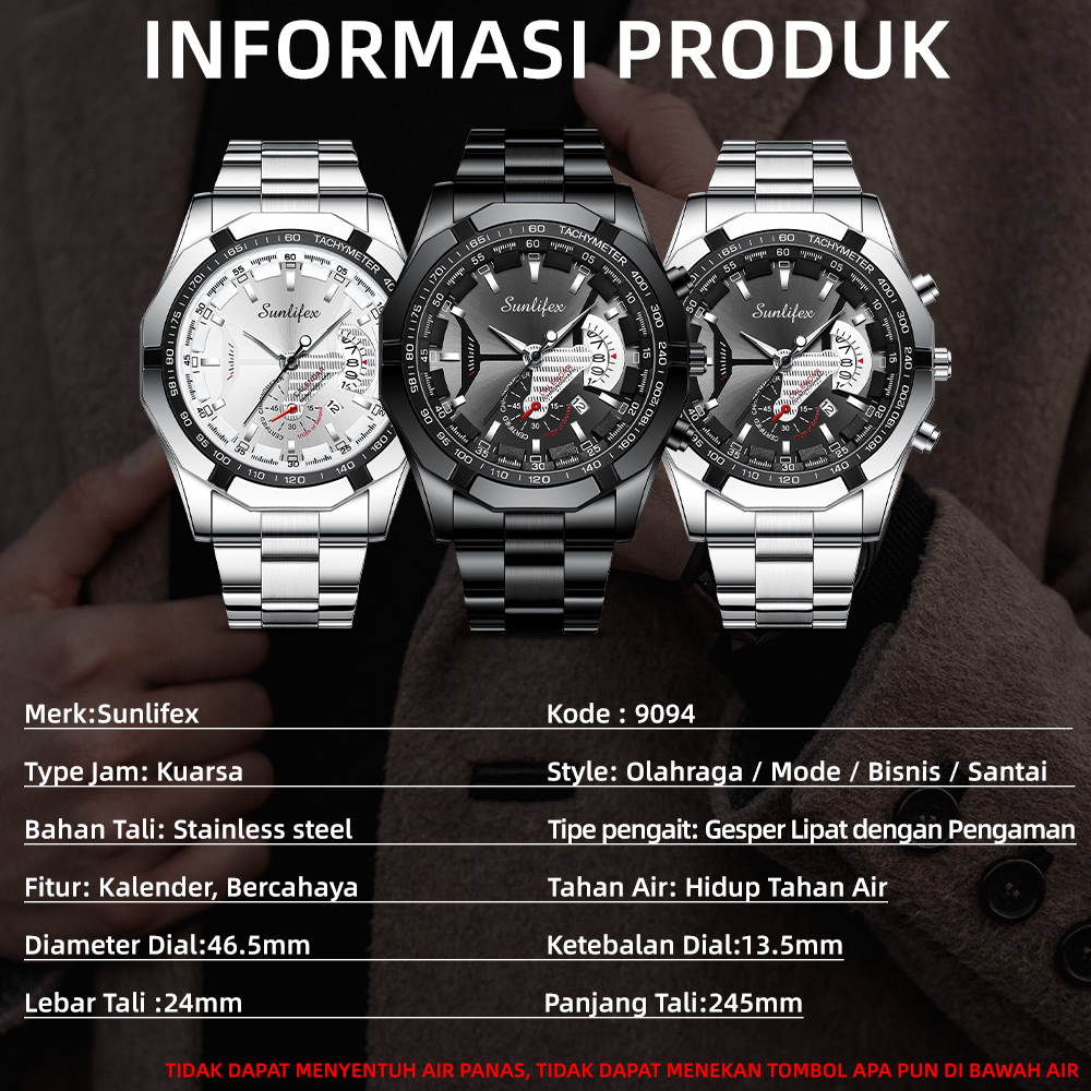 Jam Tangan Pria Quartz Kalender Tali Stainless Steel Original Free Box – Sunlifex 9094