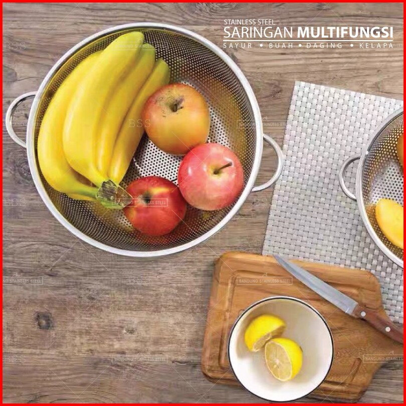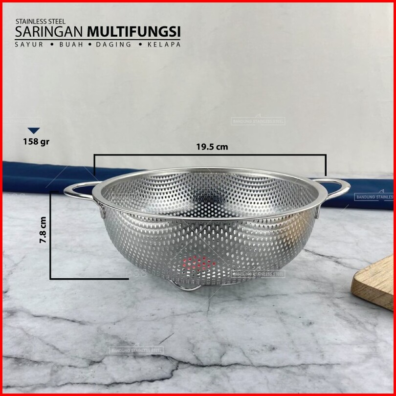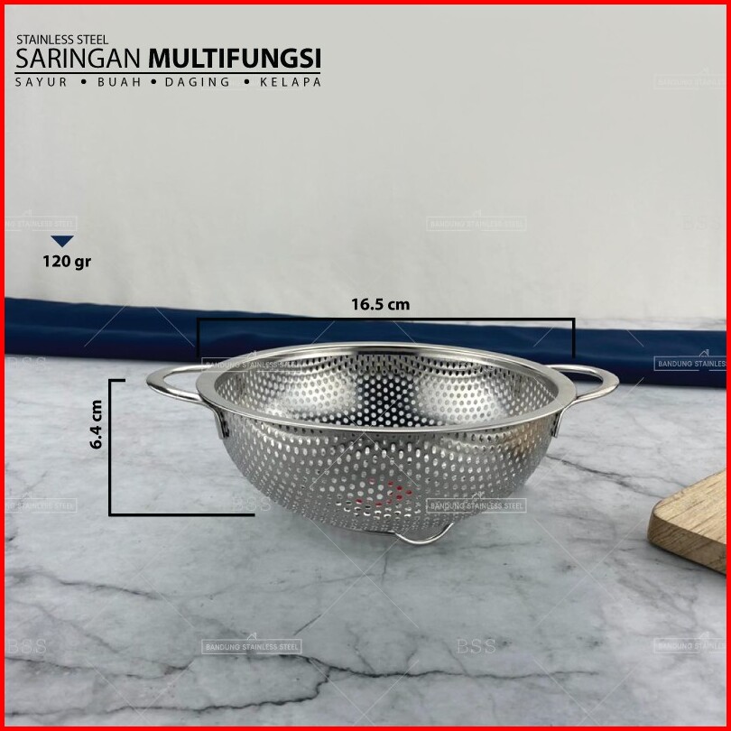 Saringan Multifungsi 16.5cm 19.5cm Cuci Sayur Daging Buah Kelapa Stainless Tebal Murah
