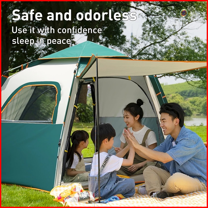 Tenda Camping Otomatis Lipat Portable 3-4 Orang Double Layer Waterproof Cocok Untuk Hiking Outdoor