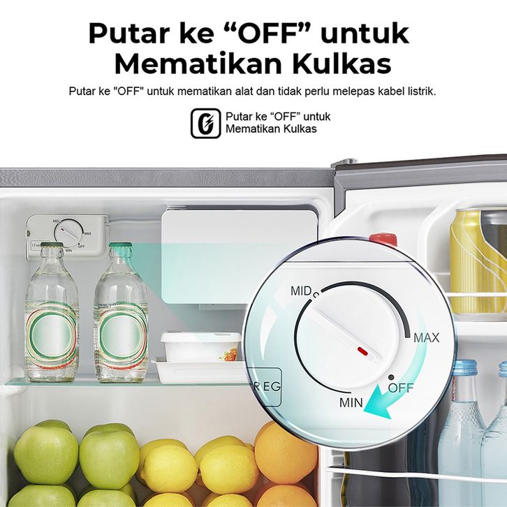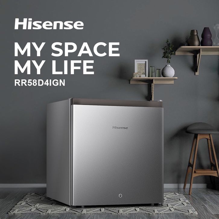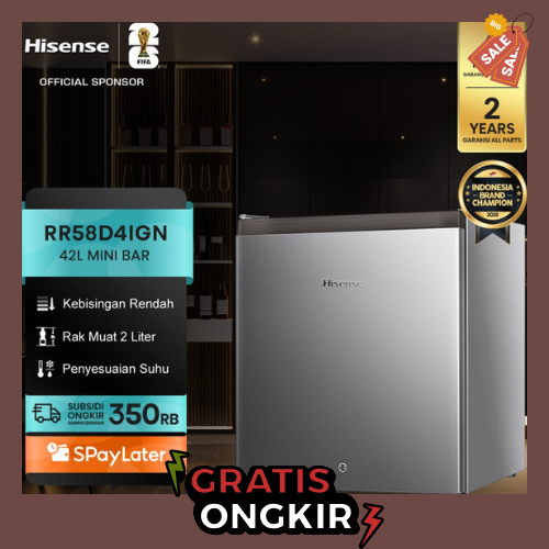 Kulkas RR58D4IGN Refrigerator Mini Bar Kapasitas 42L Warna Silver Tingkat Kebisingan Rendah 2L Rak Muat Ukuran