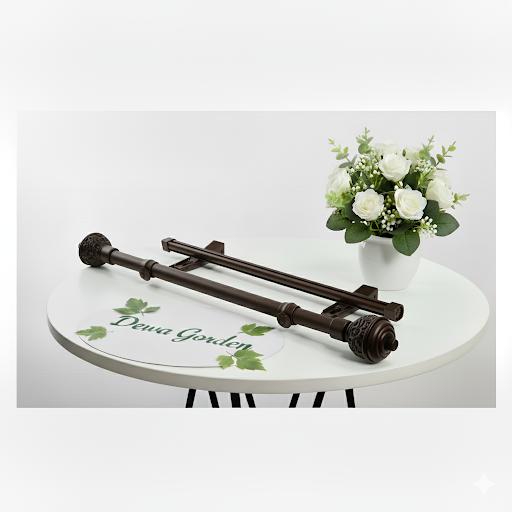 Batang Tiang Besi Gorden Double Rel Vitrase Model Princess Batik Lengkap Full Set Ukuran 1 1.25 1.5