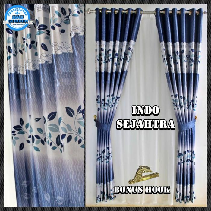 Gorden/Curtain Pintu Kamar Aesthetic Murah Blackout Import Printing Hijau Coklat Biru Lebar 110 Cm x