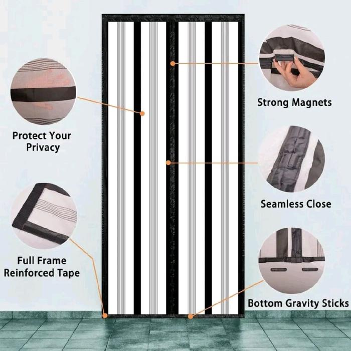 Tirai Pintu Magnet Langsung Tempel PVC TEBAL untuk Ruang AC/Dapur/Toilet Uk.110x220cm