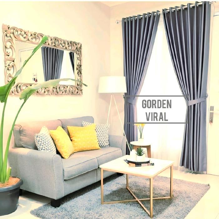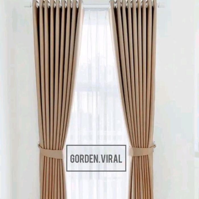 Gorden Blackout Safron Doff 9 Gelombang Tinggi 300 350 400 cm Hordeng Jendela Pintu Tali Curtain