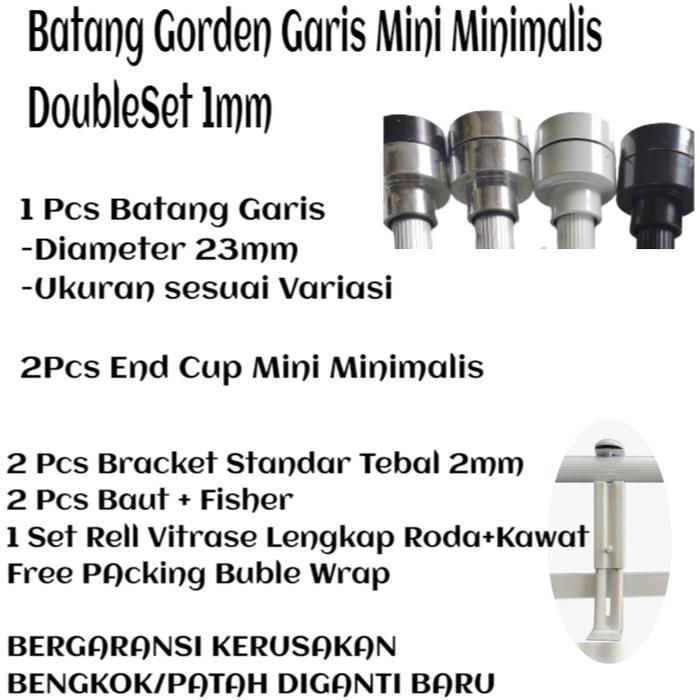 Batang Tiang Besi Gorden Minimalis Double Rel Vitrase 1 2 3 4 Meter Coklat Hitam Putih Full Set