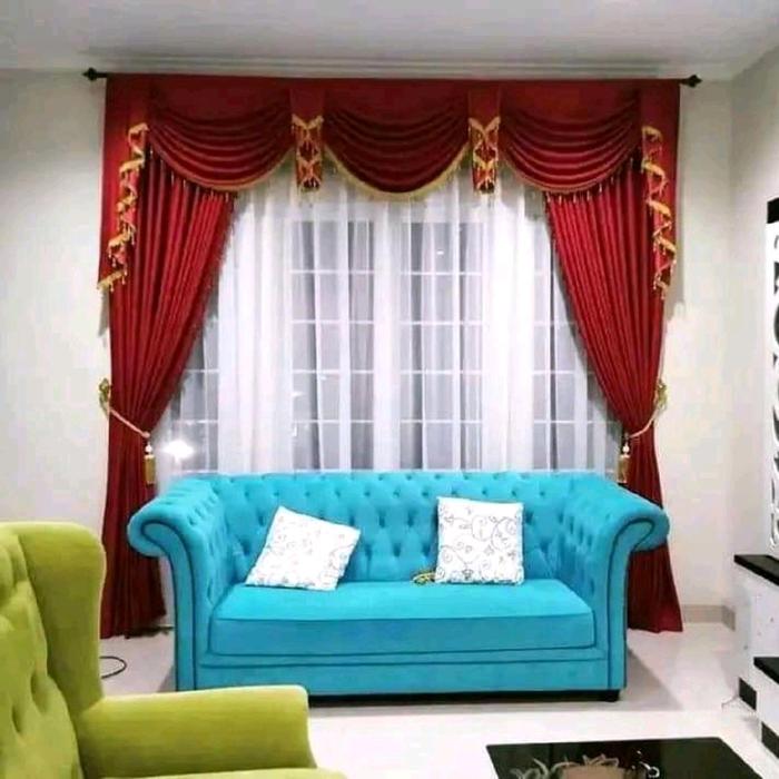 Gorden Model Poni Gelombang Spanyol 1 set Hordeng Ruang Tamu Tirai Jendela Korden Pintu Kamar Tali