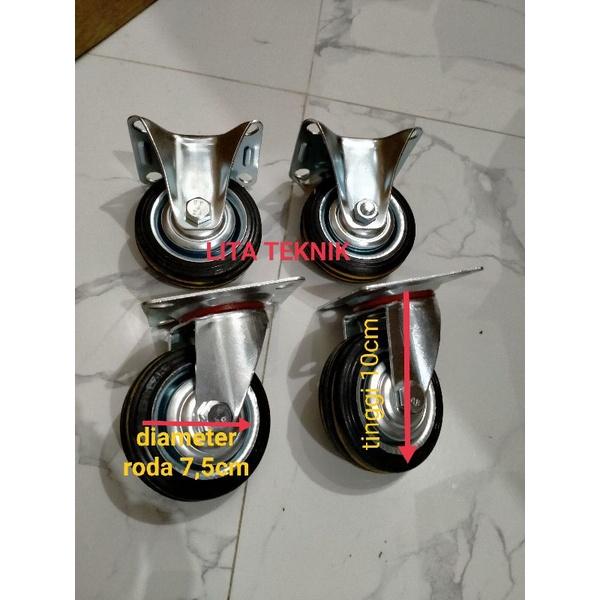 Roda karet 3 inchi roda casters 3" 4pcs roda roly - Warna