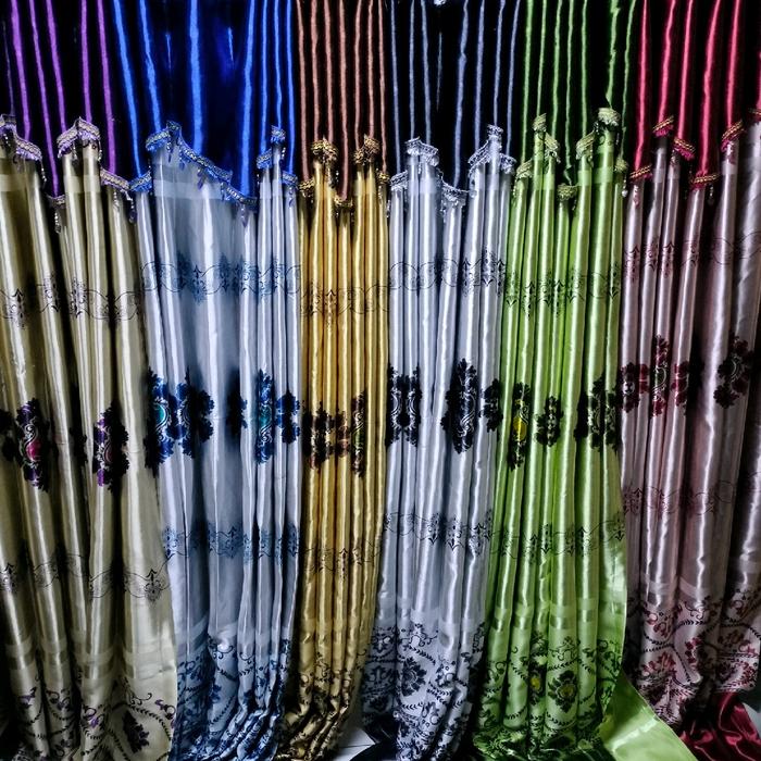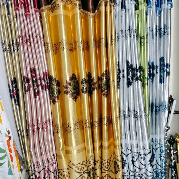 Gorden Blakout Motif Glossy Minimalis 6 Gelombang - Tali Merah Biru Ungu Renda Jendela dan Pintu