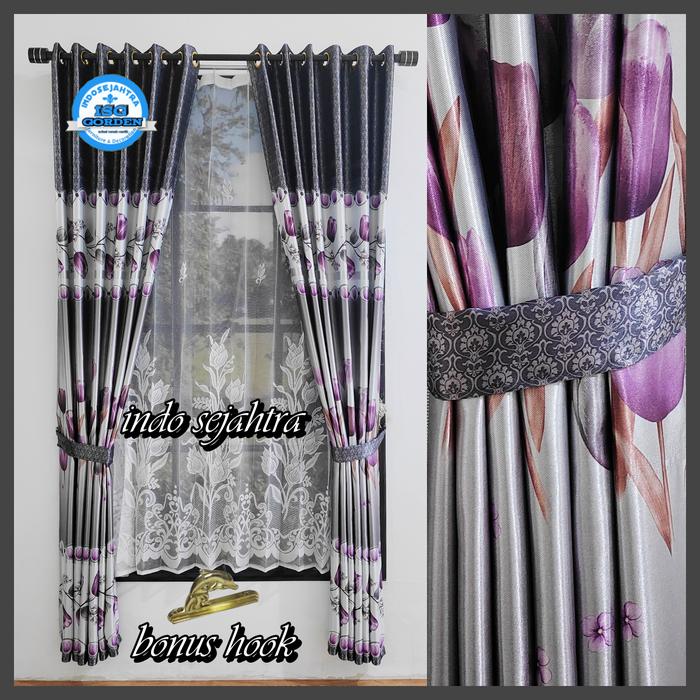 Indo Sejahtera Gorden Pintu & Jendela Ruang Tamu Minimalis Blackout Printing Coklat Import Model
