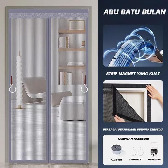 Tirai Pintu Jaring- Anti Cakar Kucing Ganas! Jaring Super Rapat + Magnet Auto Seal - Pasang