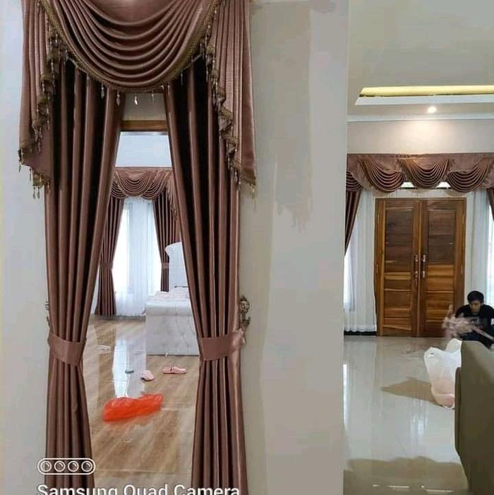 Gorden Model Poni Gelombang Spanyol 1 Set Mewah Hordeng Pintu kamar Kain Tirai Jendela Korden Ruang