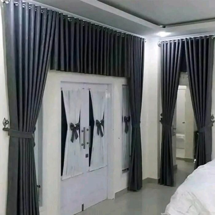 1 Set Gorden Blackout Poni Rumbai Atas Pintu Hordeng Jendela Ruang Tamu Minimalis Tirai Dekorasi