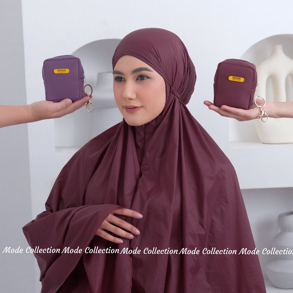Mukena Mini Travelling Parasut Korea Premium Camelia Series Mini Pouch 2in1 Resleting Dagu