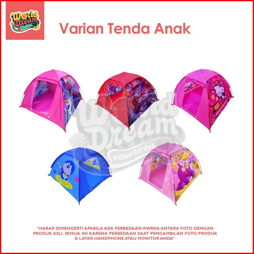 Worldream Tenda Camping Tenda Karakter Rumah Camping Motif Hello Kitty Frozen Spiderman Princess
