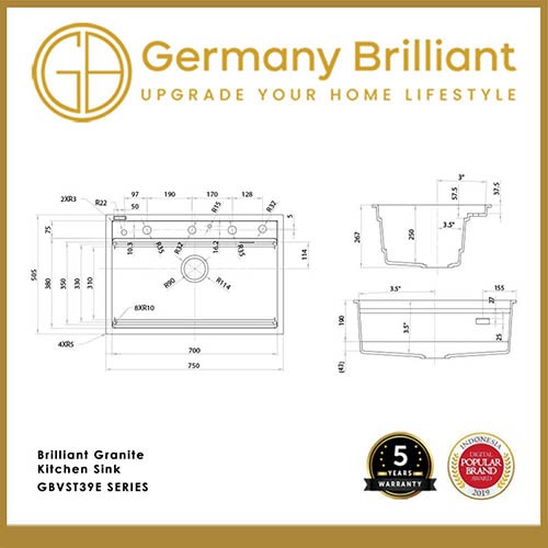 Germany Brilliant Kitchen Sink Bak Cuci Piring Dapur 1 Lubang GBVST39E Series