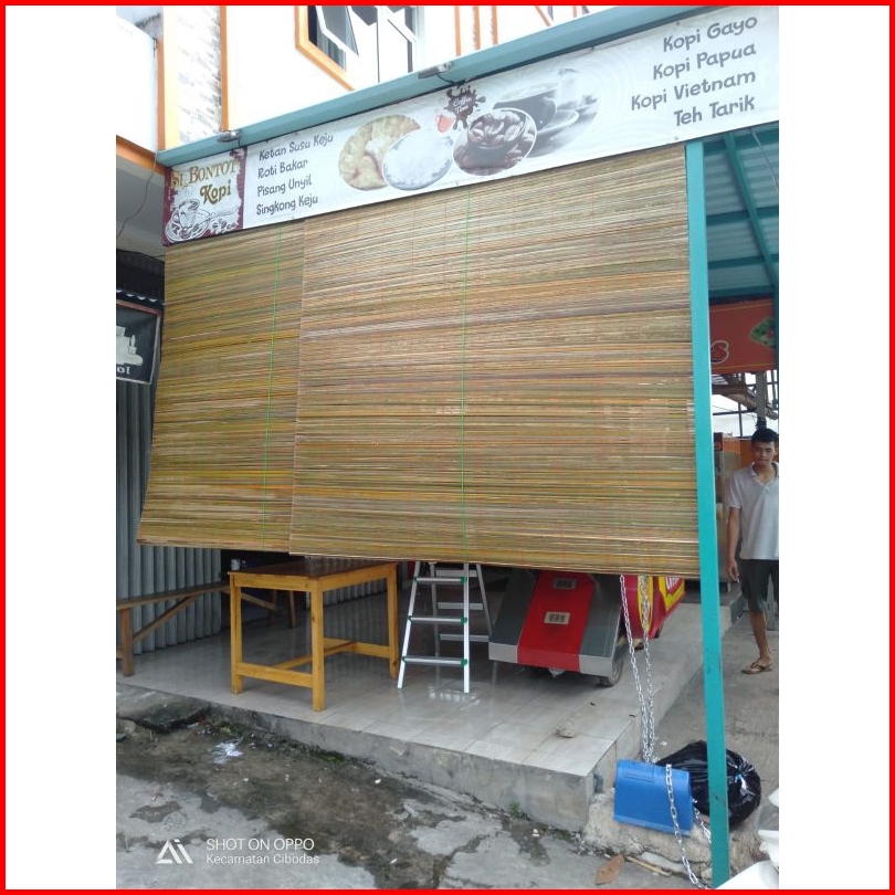 Krey Tirai Bambu Sawit 2 X 2 Plitur Vernis Tali Penggulung
