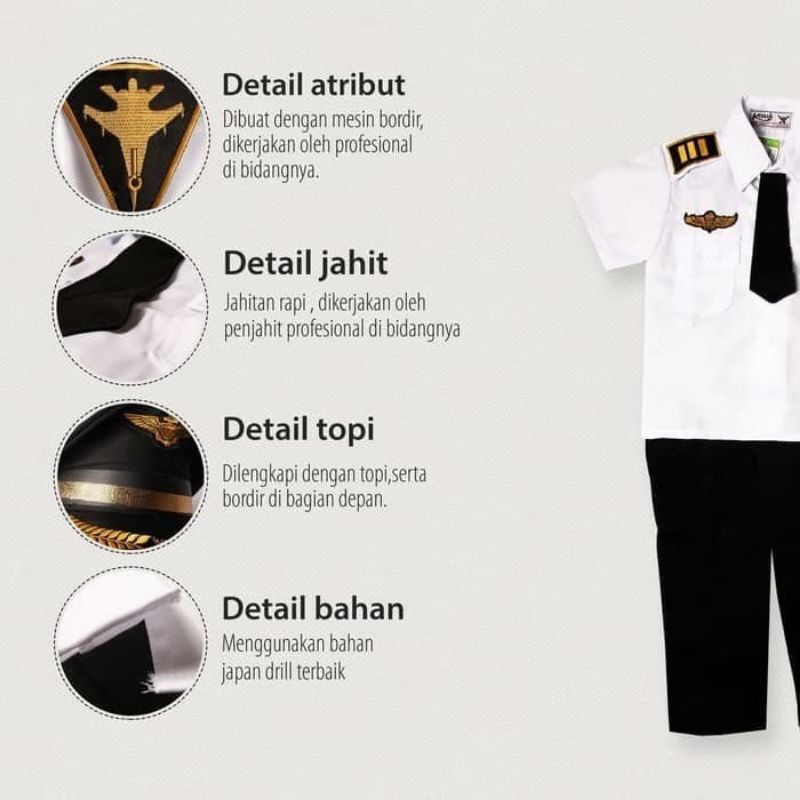 Kostum Baju Seragam Pilot 1 Set Anak Anak Tk Kostum Karnaval Peket Komplit