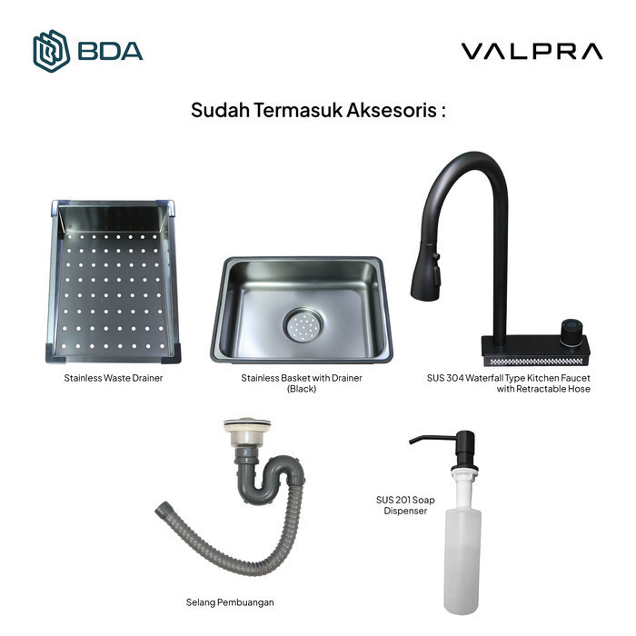 Valpra Kitchen Sink 1 Lubang Stainless Wastafel Cuci Piring Bak Cuci Piring V HC 8245 BK