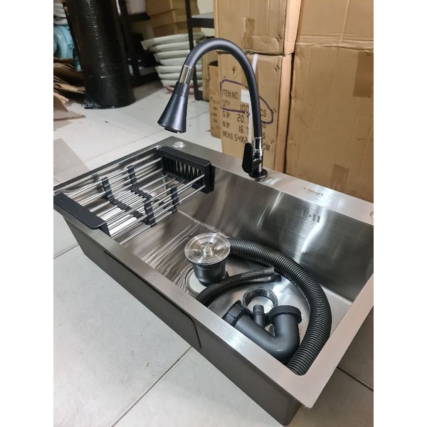 KITCHEN SINK 8050 7545 / Wastafel Bak Cuci Piring Stainless SUS304 Tebal 80cm x 50cm / 75cm x 45cm PAKET LENGKAP