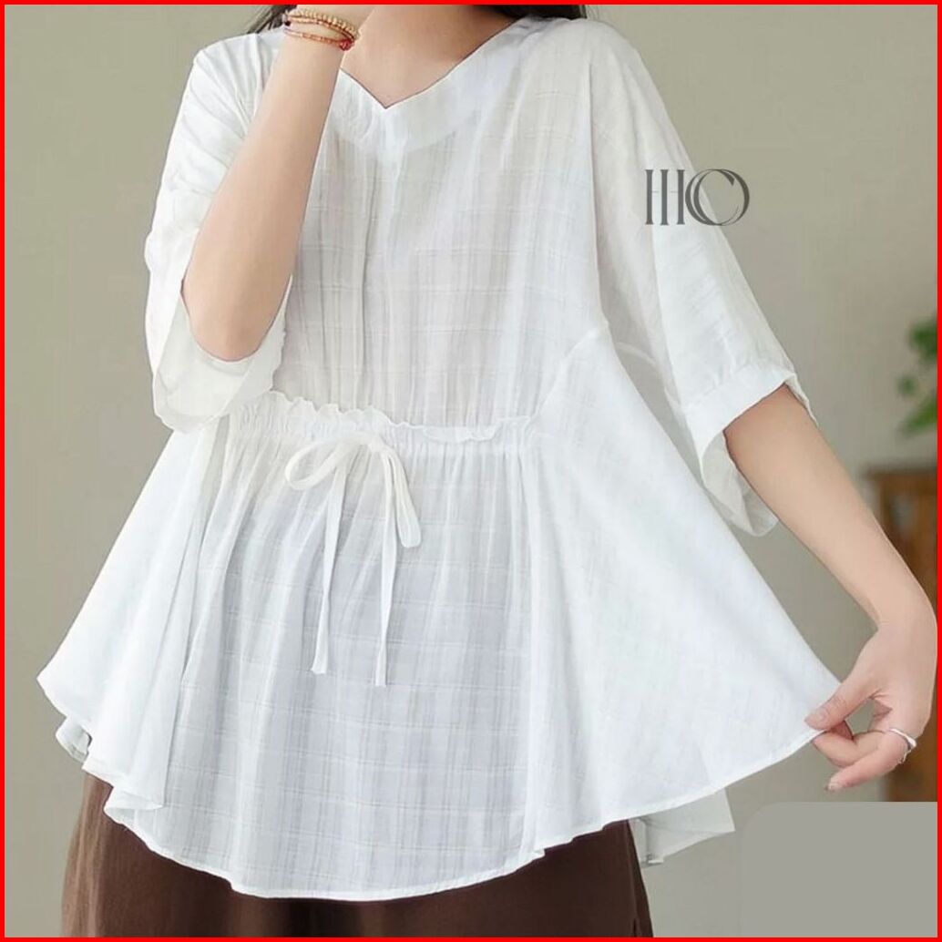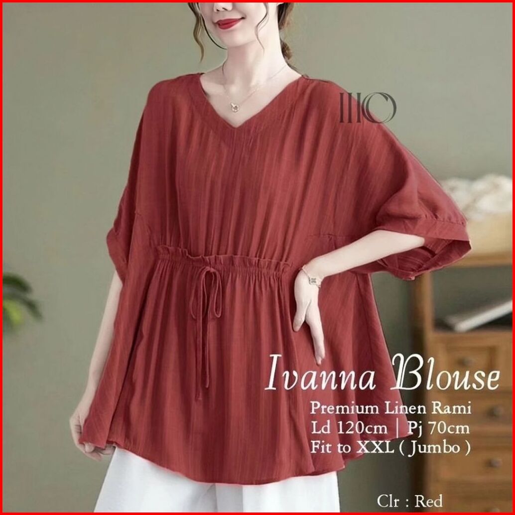 Hicoo Ivanna Blouse Wanita Polo Linen Jumbo Oversize Korean Style