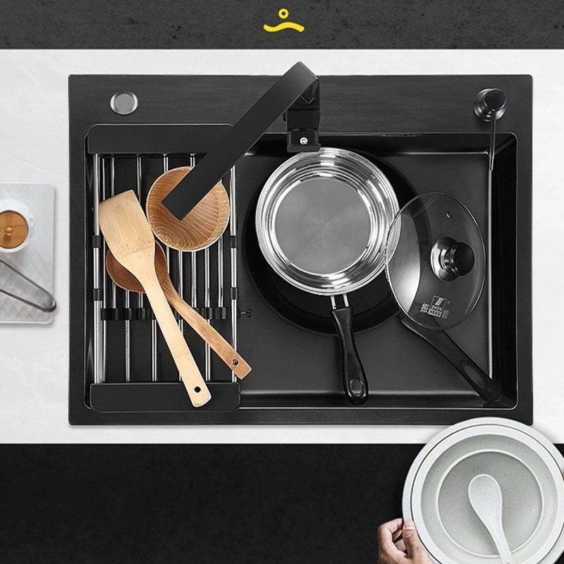Paket Kitchen Sink Hitam/sink cuci piring Dengan Keran Tarik/ Wastafel Cuci Piring Stainles
