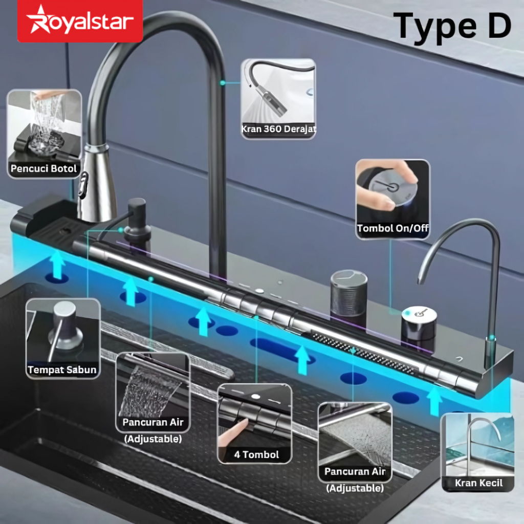 Royalstar Sink Wastafel Stainless Steel Tebal Sink Mewah Lengkap Bak Cuci Piring