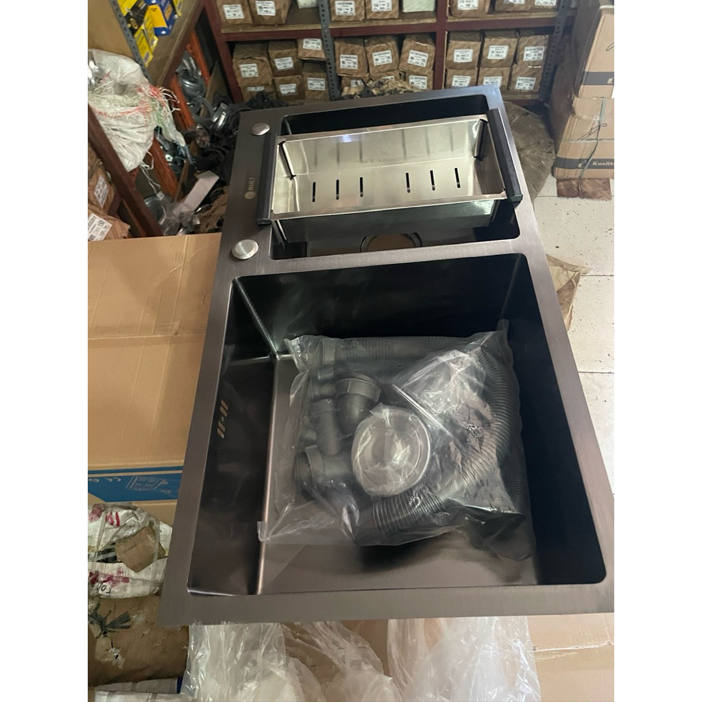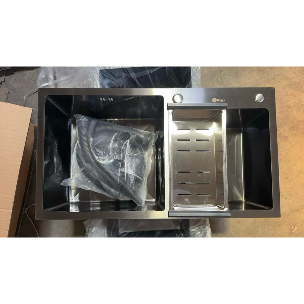 WANLY Bak Cuci Piring Hitam Premium Stainless – Kitchen Sink / Westafel Dapur 1 Lubang & 2 Lubang