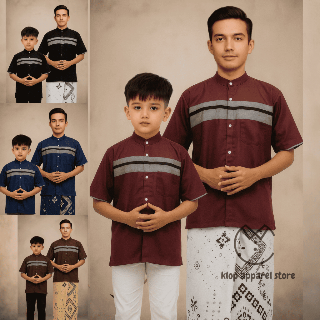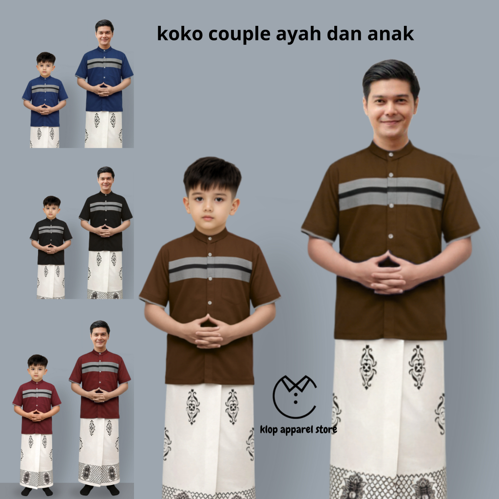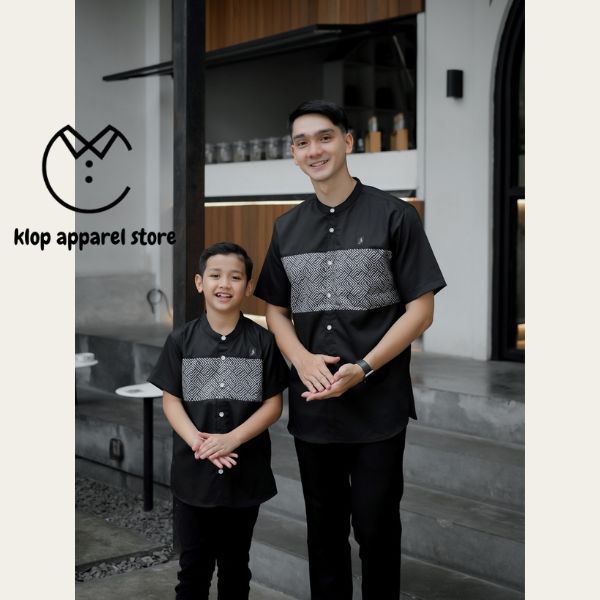 Baju Koko Couple Lengan Pendek Pria Ayah Dan Anak Kombinasi Terbaru Ukuran M L Xl Xxl, Warna Hitam