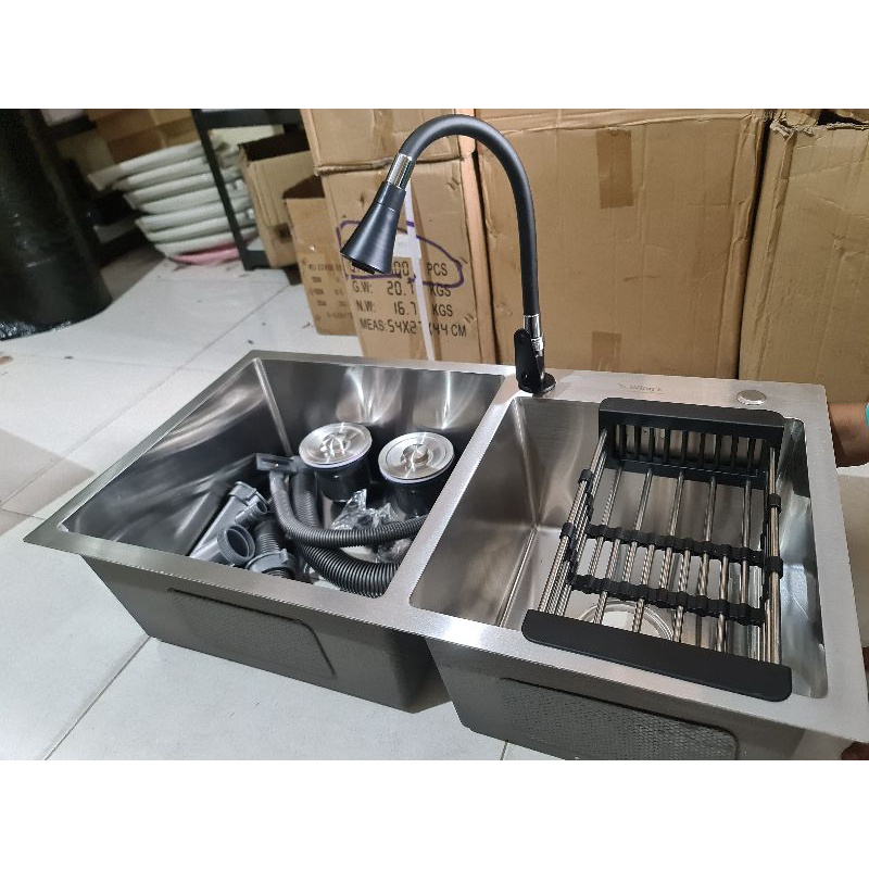 KITCHEN SINK 8245 / Wastafel Bak Cuci Piring 2 Lubang Tebal Stainless SUS304 tebal 3mm 82cm PAKET KOMPLIT PROMO