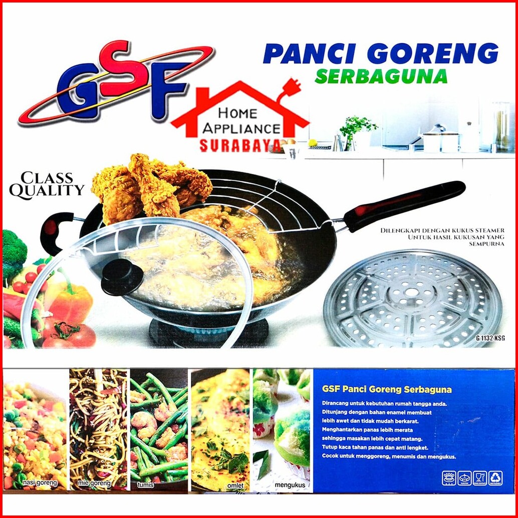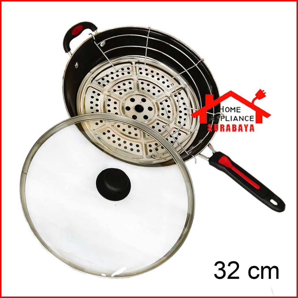 Panci Wajan Goreng Anti Lengket Tutup Kaca Tirisan Minyak Saringan Pengukus 32 Cm Gsf G 1132 Ksg