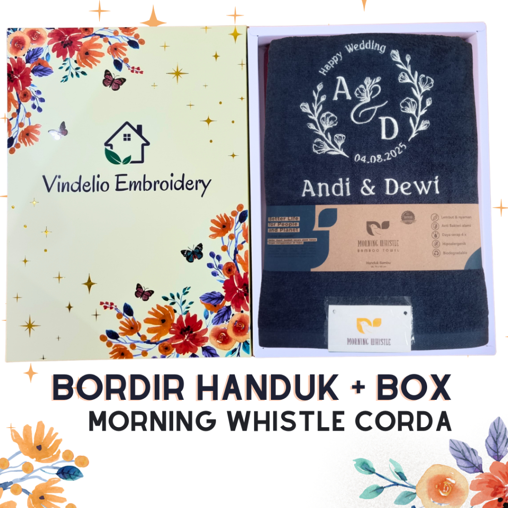 Handuk Mandi Bordir Custom Nama Bamboo 70x135 cm Cocok Souvenir – Morning Whistle